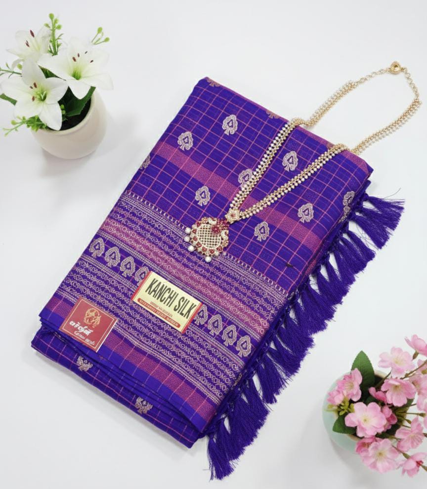 Be the first to review “Luxurious Deep blue Checked Kanchi Silk Saree”