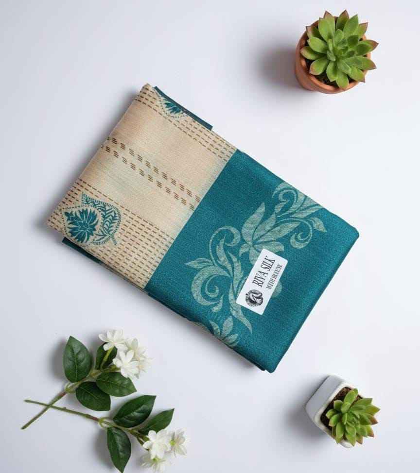 A graceful combination of teal and soft beige, this Fancy Silk Saree features elegant woven-style prints that bring a touch of tradition with a modern twist. Lightweight, smooth, and easy to drape — perfect for small functions, office events, and casual celebrations.